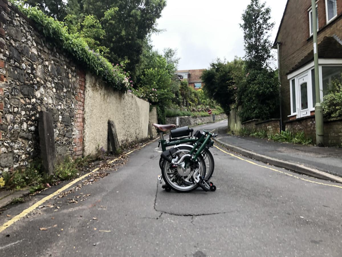 Cytronex Brompton ready to tackle the 7% grade of Blue Ball Hill just behind our workshop!